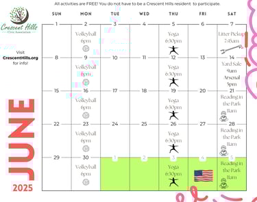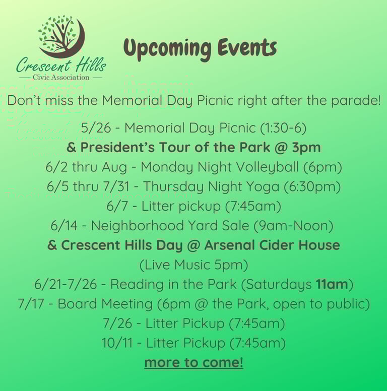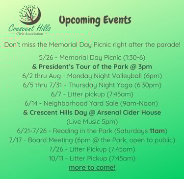 Our Newsletters gets distributed 3-4 times a year by 38 volunteers who hand deliver it to every home in the Crescent Hills neighborhood.
